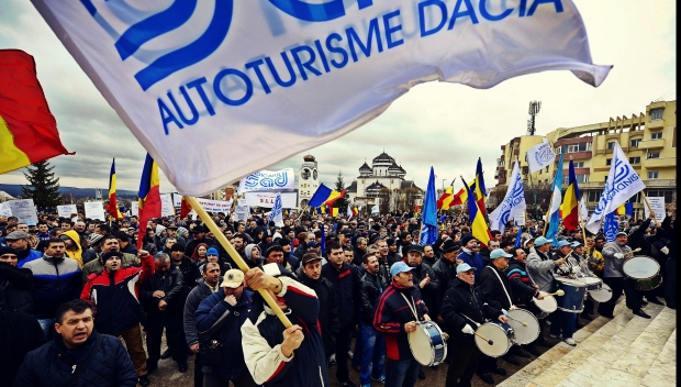 Aproximativ 10.000 de angajaţi, în principal din industria auto, din care circa 5.000 ai Dacia, sunt aşteptaţi, marţi, la un miting în faţa Casei de cultură a sindicatelor din Mioveni, principala nemulţumire fiins trecerea contribuţiilor sociale de la angajator la angajat, potrivit liderului Sindicatului Autoturisme Dacia (SAD), Nicolae Pavelescu.