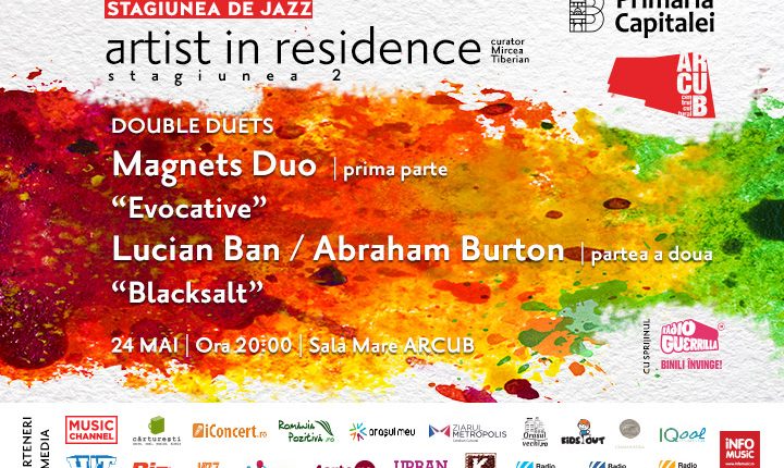 Două duete ale jazzului românesc și internațional vin la ARCUB cu ultimele lor proiecte muzicale într-un nou concert al stagiunii Artist in Residence. Cătălin Milea/Dan Mitrofan și Lucian Ban/Abraham Burton cântă joi, 24 mai, ora 20:00 în dublul concert Double Duets de pe scena centrului cultural din strada Lipscani 84-90.