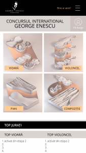 Aplicația este organizată pe cele trei secțiuni de interpretare pian, vioară, violoncel, conține profilurile tuturor candidaților calificați și propune o serie de criterii de apreciere în baza cărora jurații amatori să își ordoneze opțiunile.