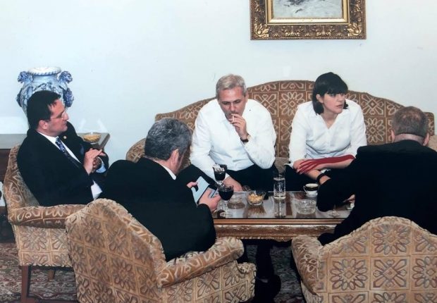 După ţinute, poza pare să fie făcută în aceeaşi zi şi acelaşi loc cu celelalte prezentate de Victor Ponta. Numai că Liviu Dragnea stă pe canapea exact lângă Laura Kovesi şi trage din ţigară. Ambii sunt în cămaşă albă, iar Kovesi are un bandaj elastic pe mâna stângă (în 2014 a avut mâna în ghips). În jurul mesei mai sunt George Maior, fost director SRI (în stânga), Gabriel Oprea (în stânga cu spatele) şi încă un personaj neidentificat (în dreapta cu spatele).