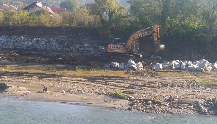Râul Vișeu este amenajat împotriva inundațiilor, în regim de urgență, în localitatea Vișeu de Sus, din Maramureș