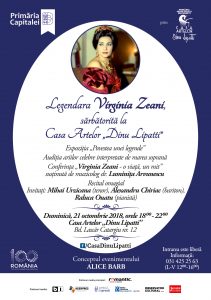 “Legendara Virginia Zeani, sărbătorită la Casa Artelor <<Dinu Lipatti>>” continuă seria evenimentelor din Luna Muzicii Clasice la Casa Artelor “Dinu Lipatti”, centru de excelență fondat și condus de către pianista și regizoarea Alice Barb, ce are ca scop promovarea culturii clasice românești, avându-l ca vârf de lance pe Dinu Lipatti, cel mai mare pianist român al tuturor timpurilor.