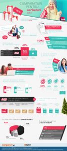 Pentru găsirea cadoului perfect, românii activi pe internet vor utiliza, în proporție de 80%, surse online. Pe lângă acestea, răsfoirea revistelor de reduceri ale magazinelor (55%) și explorarea vitrinelor magazinelor (36%) sunt, în continuare, obiceiuri care se mențin. 34% dintre internauți declară că vor merge mai degrabă la sigur și își vor întreba apropiații ce cadouri își doresc.