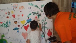 In foaier, un banner de mari dimensiuni ii asteapta pe copii alaturi de artisti si voluntari CONIL sa realizeze impreuna un MANIFEST IDENTITAR- GANDURI pentru ROMANIA ce va ramane marturie a celor intamplate aici.
