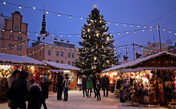 Vechiul centru al orașului Tallinn, cu ale sale acoperișuri colorate, pare că a înghețat între granițele Evului Mediu, sculptat în arhitectură baroc. Dacă răsucești puțin cheița de la cutia imaginației, aproape că poți să auzi sunetul copitelor de cai pe străzile pietruite. Se aude că Tallinn a fost gazda primului brad de Crăciun instalat pe străzile unui oraș european. Legenda spune că în 1441 Frăția Capetelor Negre, o asociație a negustorilor germani celibatari, a înălțat primul brad în piața primăriei, începând să cânte și să danseze în jurul acestuia. Deși frăția a dispărut, câteva lucruri încă se păstrează, printre care sărbătorirea Crăciunului, an de an, în jurul bradului, într-una dintre cele mai mari piețe de Crăciun din Europa.