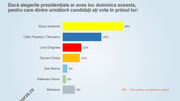 De menționat că procentele prezidenţiabililor sunt din rândul celor 68% care au precizat o opțiune.