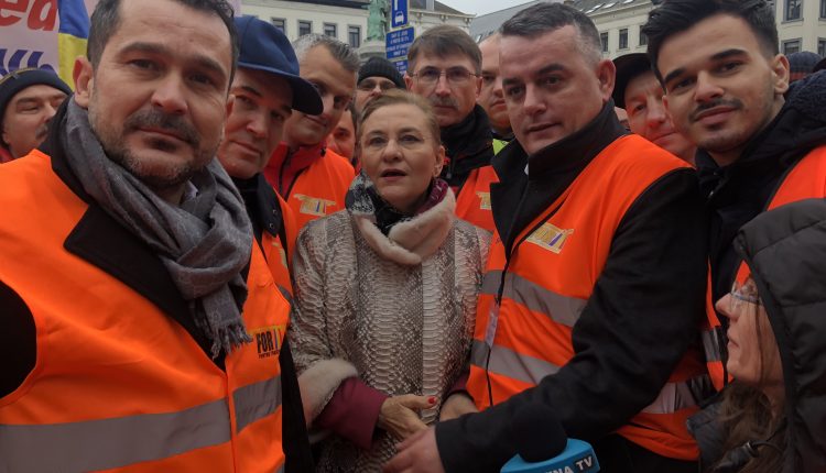 Alături de ei, încă de la primele ore ale dimineții s-a aflat europarlamentarul umanist, Maria Grapini, dedicat de ani buni cauzei transportatorilor români. Grapini i-a reprezentat la Bruxelles, prin intervenții și solicitări permanente și pertinente, cerând liderilor europeni să țină balanța dreaptă și în această chestiune, vitală pentru economia națională.