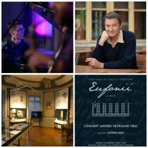 Stagiunea de jazz și literatură „Eufonii la MNLR” continuă vineri, 29 martie 2019, de la ora 19:00, printr-un nou concert-lectură, invitați fiind membrii formației Andrei Petrache Trio, intermediile de lectură aparținând scriitorului Florin Iaru.