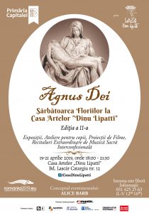 Primăria Municipiului Bucureşti prin Casa Artelor „Dinu Lipatti” vă invită la cea de-a doua ediție a evenimentului Agnus Dei – Sărbătoarea Floriilor la Casa Artelor „Dinu Lipatti” ce va avea loc în perioada 19-21 aprilie 2019, între orele 18:00-21:30.