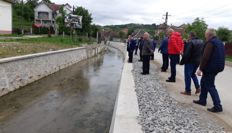 Vizita de lucru a continuat cu inspectarea obiectivului „Amenajare Valea lui Vasile”, din comuna Dobrești, care are o valoarea totală actualizată de 11,58 milioane de lei. Proiectul prevede: recalibrarea albiei pe 7,269 km, 3,592 km de apărare de mal cu gabioane, 38 m de apărare de mal cu zid nou din piatră, 371 m supraînălțare zid de piatră, 100 m zid nou din piatră rostuită, 16 praguri și 1,470 km de reparații la apărări de mal(ziduri de piatră). Investiția este realizată în proporție de 90% și va fi finalizată anul acesta.