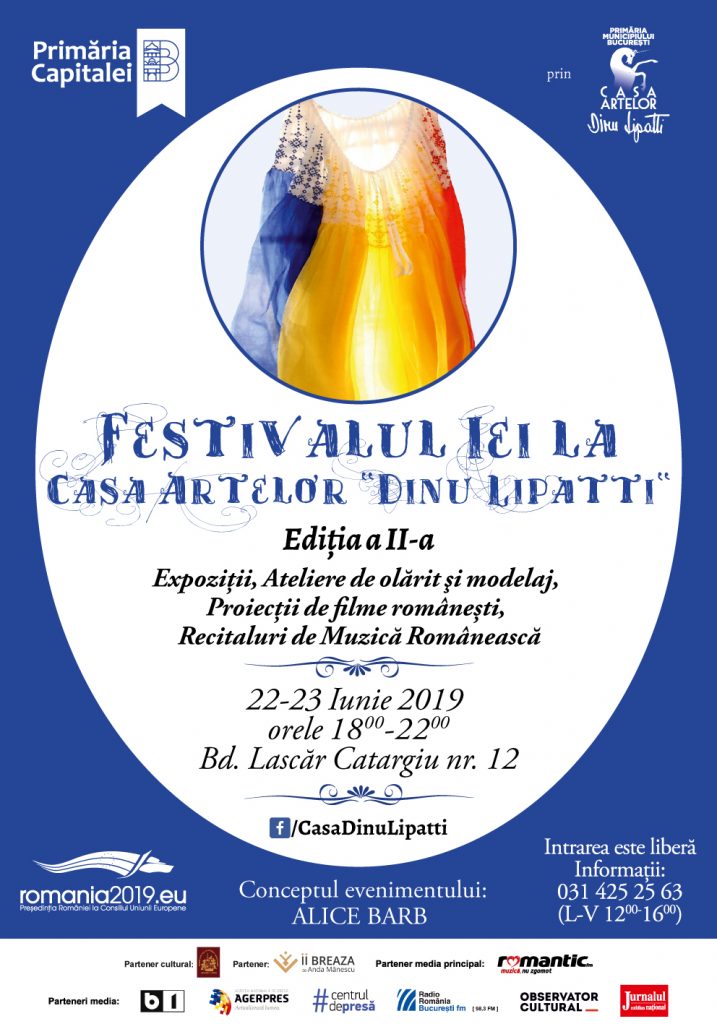 Primăria Municipiului București prin Casa Artelor „Dinu Lipatti” în parteneriat cu Muzeul Național al Satului „Dimitrie Gusti” și Ii Breaza de Anda Mănescu, organizează sâmbătă și duminică – 22 și 23 iunie, între orele 18:00 – 22:00, Festivalul Iei Ediția a II-a. Astfel, Casa Artelor „Dinu Lipatti, un Centru Cultural de Excelență care promovează cultura română și artiștii români, vă invită în cel de-al doilea an de activitate, la un eveniment ce se înscrie deja într-o tradiție – celebrarea reperelor culturale esențiale pentru identitatea națională prin cel mai frumos simbol al sufletului și al tradiției românești – ia românească. Festivalul este prilejuit de Ziua Internațională a Iei – sărbătoare a portului românesc ce are loc în fiecare an pe 24 iunie, devenind un eveniment mondial, cu prilejul acestei zile oameni din întreaga lume îmbracând bluza tradițională românească.