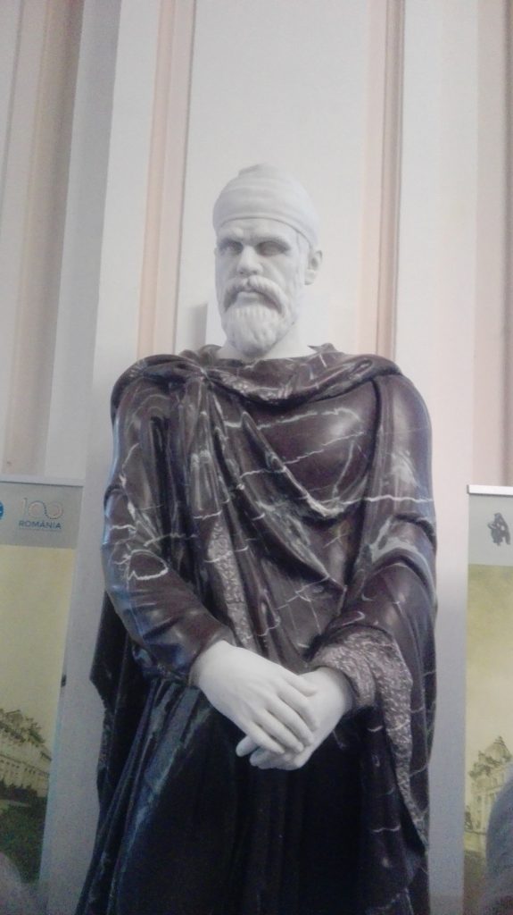 Trei tone de marmură au fost necesare pentru monument, iar rezultatul este impresionant – sculptura măsoară 2,5 metri și redă fidel trăsăturile unui locuitor al Daciei.