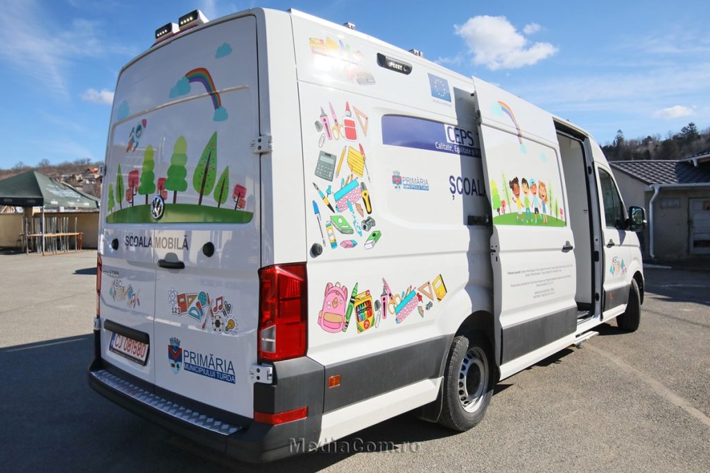 “Acest „atelier mobil” funcționează deja în Turda. Școala mobilă este un punct de atracție în comunitățile vizate. Este într-un microbuz de mari dimensiuni, care oferă o prezență vizibilă și atractivă. Această inovație este o modalitate foarte eficace de a ajunge fizic la copiii care nu frecventează școala și la părinții acestora. Microbuzul este dotat cu băncuțe și masă de lucru pentru mentorat sau consiliere, birou de lucru cu 2 laptop-uri, imprimantă A3, aer conditionat, TV led interior, TV led în exterior pentru rularea de documentare, marchiză laterală pentru umbră, scaune de exterior, dozator de apă, mini-frigider, cuptor cu microunde, cafetieră, sistem suplimentar de iluminat exterior, scară suplimentară pentru acces ușor, generator de curent, opțiuni de alimentare cu curent direct la priză externă etc”, declară Cristian Octavian Matei, primarul municipiului Turda.