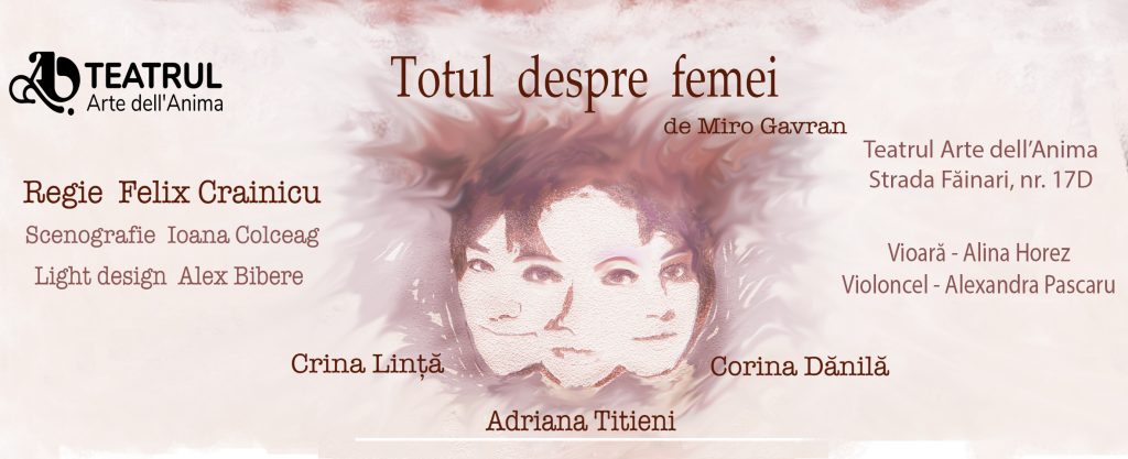 În cadrul proiectului, va fi prezentat spectacolul „Totul despre femei” de Miro Gavran, regia Felix Crainicu, cu Corina Dănilă, Adriana Irimescu și Crina Lință, o producție a Teatrului Arte dell’Anima, ce a avut premiera în iunie 2018. „Totul despre femei” este povestea unui diamant. O nestemată care va străluci de fiecare dată diferit atunci când va fi rotită în lumină. Uneori copleșitor, uneori ludic, alteori trist. Acest diamant este Femeia – mamă, iubită, prietenă, soră. „Totul despre femei” este o comedie romantică care te va pune pe gânduri. 3 actrițe, 15 personaje și un spectacol de o oră și jumătate ce-și propune să schimbe perspective, să pună femeia într-o lumină realistă, vulnerabilă, umană.