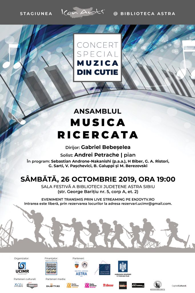Concertul este invitat în cadrul Stagiunii ICon Arts@Biblioteca ASTRA, iar intrarea va fi liberă, în limita locurilor disponibile, prin rezervare solicitată la adresa rezervari.ucimr@gmail.com