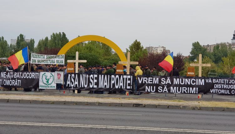 Câteva sute de silvicultori au protestat, marţi, timp de patru ore, în faţa sediului Camerei Deputaţilor de la Parlament, pe fondul intensificării cazurilor de agresiune asupra personalului silvic.