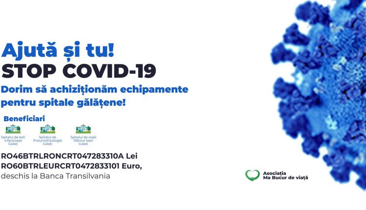 Strângem fonduri pentru a achiziționa echipamente ATI (aparatele mecanice de ventilație nou–născuți, pediatrie, adulți; truse laringoscop; baloane pentru ventilație Ruben; infuzomate; injectomate; monitoare funcții vitale; mănuși chirurgicale, măști FFP2 și FFP3, combinezoane de unică folosință și botoșei) pentru spitalele gălățene. Vor beneficia Spitalul de Boli Infecțioase, Spitalul de Pneumofiziologie și Spitalul de Copii din Galați, iar evenimentul creat pe Facebook îl puteți găsi pe:
