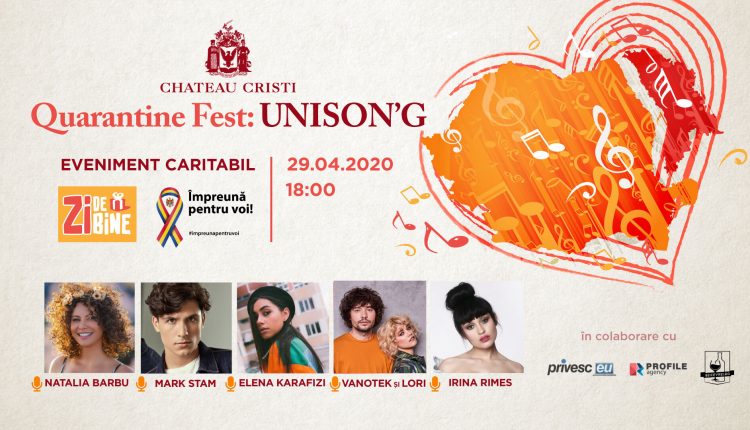 Festivalul online cu scop caritabil, Quarantine Fest: UNISON’G, va viza în același timp publicul din România cât și pe cel din Republica Moldova. Evenimentul se va desfășura LIVE, pe pagina de facebook a vinăriei Chateau Cristi și pe paginile partenerilor media.