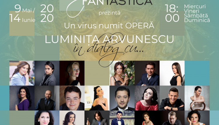 ”Un virus numit OPERĂ” – este noul generic sub care Luminița Arvunescu – apreciată realizatoare de emisiuni muzicale – și Asociația pentru Muzică, Artă și Cultură, în parteneriat cu Radio România Muzical, readuc în cea mai strictă actualitate și într-un foarte inspirat contrapunct la izolarea impusă de pandemia Coronavirus, proiectul de succes Opera FANtastica – adresat, în primul rând, iubitorilor muzicii clasice. De data aceasta, întâlnirile vor fi virtuale și se vor desfășura, atât pe pagina de Facebook a asociației: https://www.facebook.com/asociatia.muzicaartacultura/ și pe canalul YouTube: https://www.youtube.com/channel/UCfZiDeR9wXzrZLOWPFnl9YA/featured, cât și pe pagina de Facebook a postului Radio România Muzical: https://www.facebook.com/Radio-Rom%C3%A2nia-Muzical-227784404990/, în perioada 9 mai – 14 iunie de la ora 18.00, prilejuind publicului privitor, nu doar bucuria reîntâlnirii cu cu artiști de operă- extrem de iubiți, ci și pătrunderea – în premieră! – în spațiul privat al casei fiecăruia dintre artiștii cu care Luminița Arvunescu va intra în dialog.