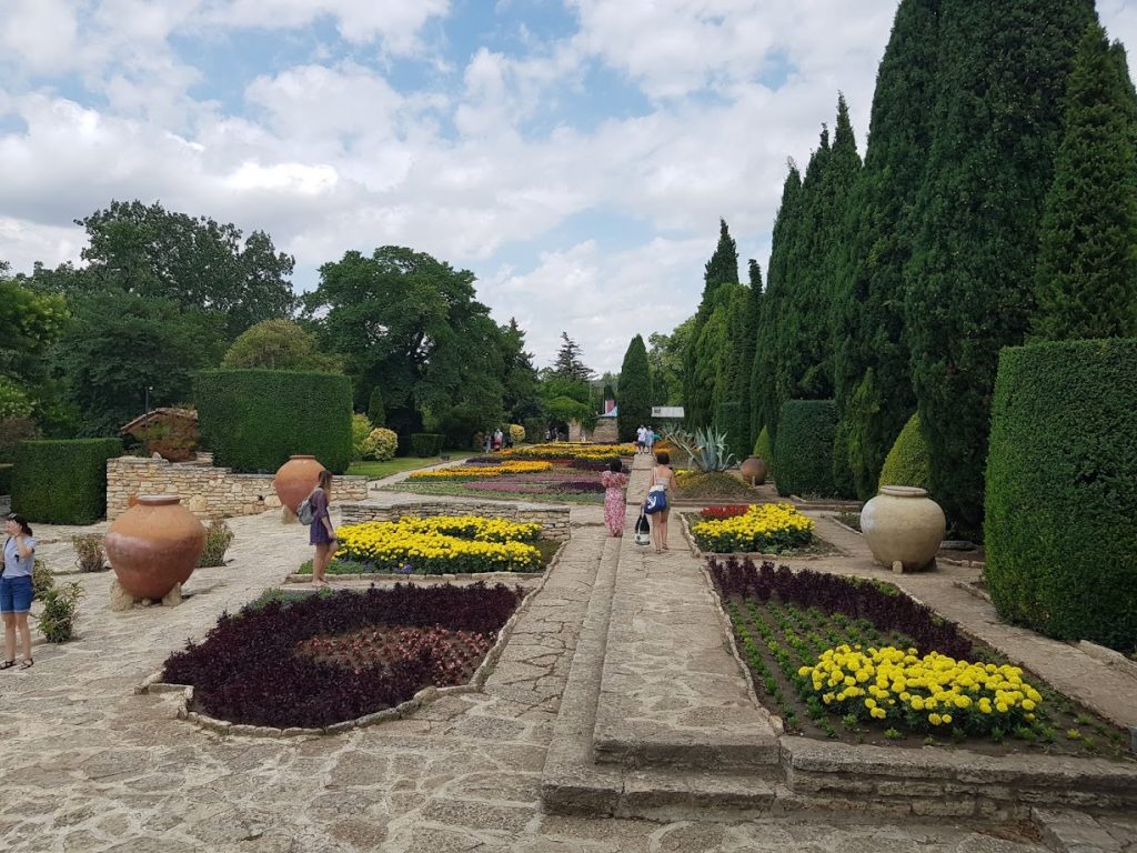 Am vizitat, pe rând, grădinile înflorite din jurul castelului, grădina botanică, clădirea principală, unde se mai găsesc câteva vile, o cascadă, un restaurant și o capelă, construită ca loc de rugăciune pentru Regina Maria. Se spune că este cea mai mică biserică din Bulgaria.