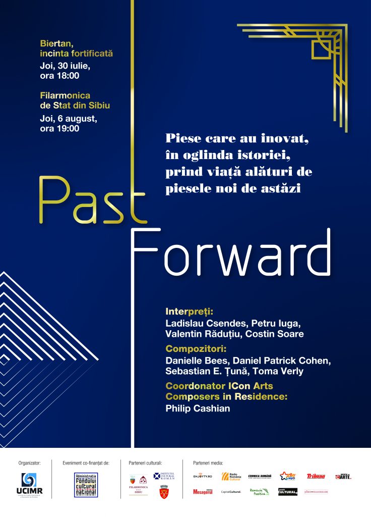Intrarea va fi liberă, prin rezervare la Casa de bilete a Filarmonicii de Stat din Sibiu: 0735.566.486. “Past Forward” este un proiect cultural organizat de UCIMR – Uniunea de Creație Interpretativă a Muzicienilor din România și cofinanțat de AFCN – Administrația Fondului Cultural Național.