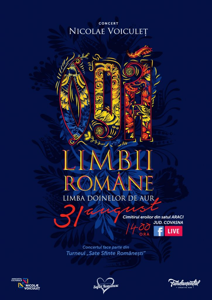 Luni, 31 august, 2020, când sărbătorim Ziua Națională a Limbii Române, în semn de omagiu și respect pentru toți cei care au slujit și păstrat cuvântul sfânt românesc, voi susține un recital acolo unde nimeni nu a mai cântat niciodată în România, aducând un omagiu Limbii Române.