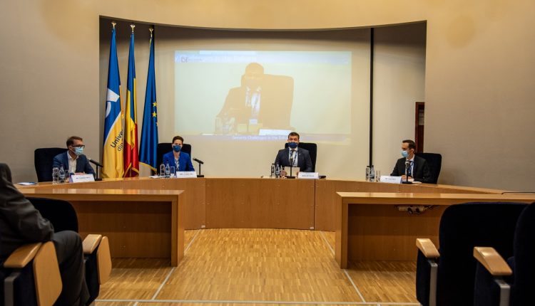 În ordinea desfășurătorului din programul conferinței, au urmat lucrările din primul panel, dedicat dimensiunilor securitare din perioada crizei pandemice, lucrări moderate de domnul Laurențiu Ștefan, consilier prezidențial și profesor asociat la UVT. Au avut intervenții în lucrările panelului doamna Simona Cojocaru, Secretar de Stat în cadrul Ministerului Apărării Naționale, Excelența Sa, domnul ambasador Sergiu Celac, Excelența Sa, domnul ambasador Lazăr Comănescu și Excelența Sa domnul ambasador George Bologan.