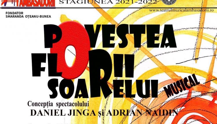 La TEATRUL MUZICAL AMBASADORII, programul lunii mai continuă cu „Povestea Florii – Soarelui, un musical plin de culoare, dedicat iubitorilor basmului și folclorului românesc autentic, ce va fi prezentat publicului în zilele de sâmbătă 22 mai, de la ora 18.00 și duminică 23 mai, de la ora 11.00, la Sala Mică a Palatului Național al Copiilor.