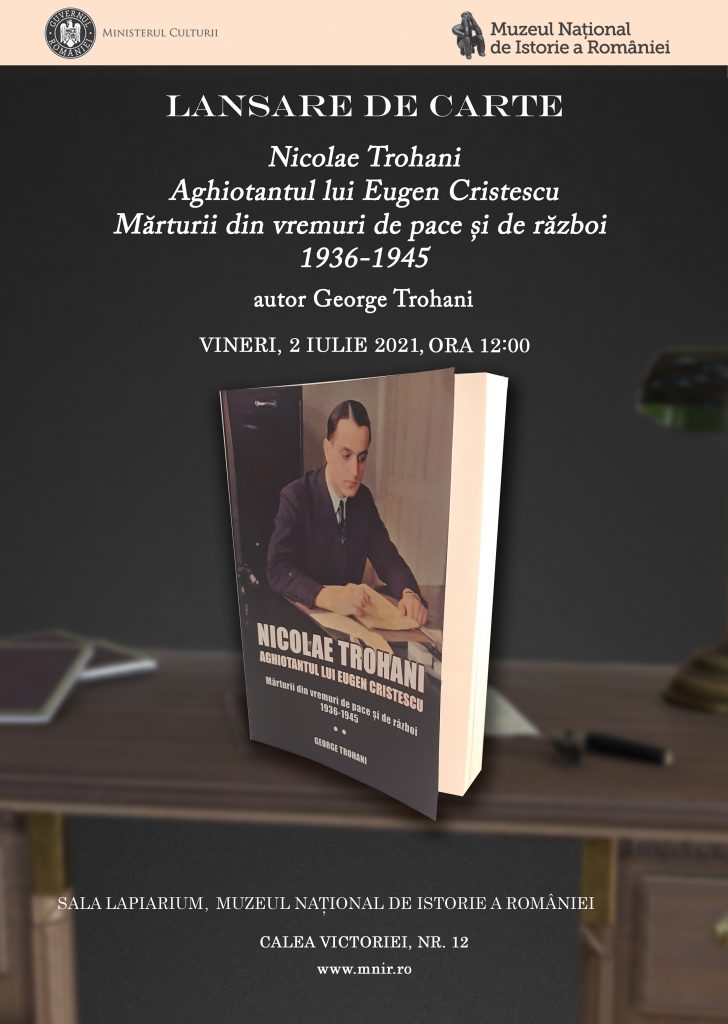 Vineri, 2 iulie 2021, începând cu ora 12:00, în Sala Lapidarium a Muzeului Național de Istorie a României din Calea Victoriei nr. 12, va avea loc lansarea celor două volume ale cărții „Nicolae Trohani, aghiotantul lui Eugen Cristescu. Mărturii din vremuri de pace și de război, 1936-1945”, autor George Trohani.