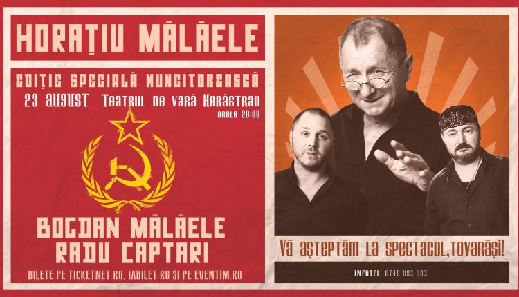 Luni, 23 august, maestrul Horațiu Mălăele, Bogdan Mălăele și Radu Captari vor face o nouă demonstrație de virtuozitate sub semnul ironiei și al umorului de cea mai bună calitate, în spectacolul „EDIȚIE SPECIALĂ MUNCITOREASCĂ”, începând cu ora 20:00, pe scena Teatrului de Vară „Constantin Tănase” din Herăstrău.