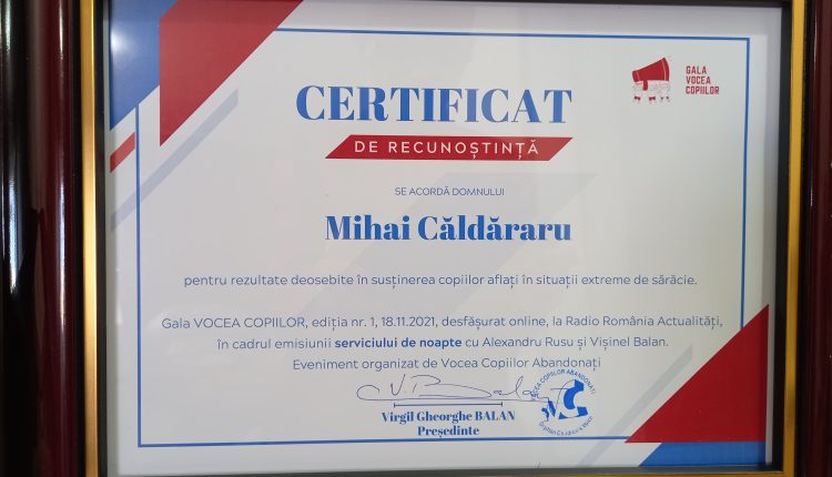 A început să ofere sprijin semenilor săi prin 2011, prin intermediul unui ong de a-și forma un viitor și care întâmpinau greutăți sau aveau nevoie de lămuri, le primeau cu mare inimă de la Mihai Căldăraru fără a avea vreun beneficiu. A fost premisa a ceea ce urma să vină. Se simte liniștit știind că nu a stat degeaba și că a pus umărul acolo unde a fost nevoie, mai ales că a urmat înființarea unei asociații caritabile.