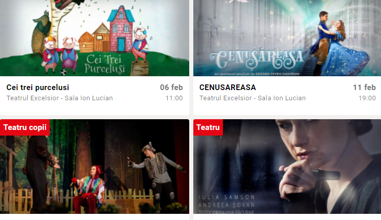 Duminică, 6 februarie, ora 11:00, Teatrul EXCELSIOR (Sala „Ion Lucian”): Cei trei purceluși, adaptare după o poveste de J. O. Halliwell-Phillipps, dramatizarea și regia Stelian Milu. Vârsta minimă recomandată: 3+