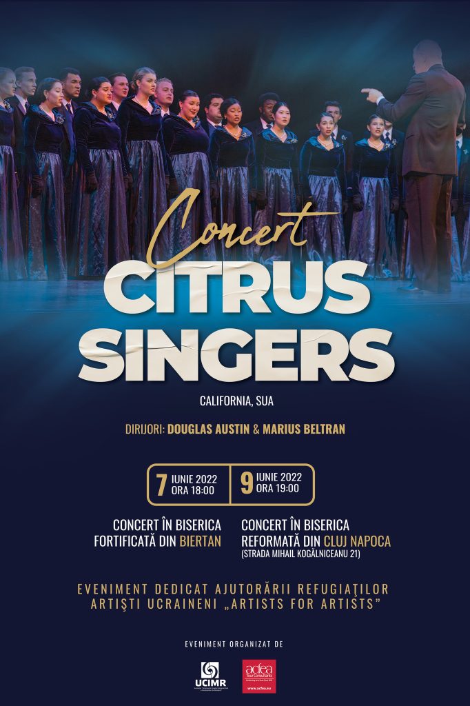 Corul de prestigiu internațional Citrus Singers va sosi în România cu prilejul unui turneu european de amploare. Lucrări emoționante despre triumf și speranță, parte din repertoriul global, vor fi interpretate de cei 45 de membri ai corului Citrus Singers, aflat pentru prima dată în România. Artiștii vor concerta sub bagheta dirijorilor Douglas Austin și Marius Beltran în spații cu calități acustice deosebite:
