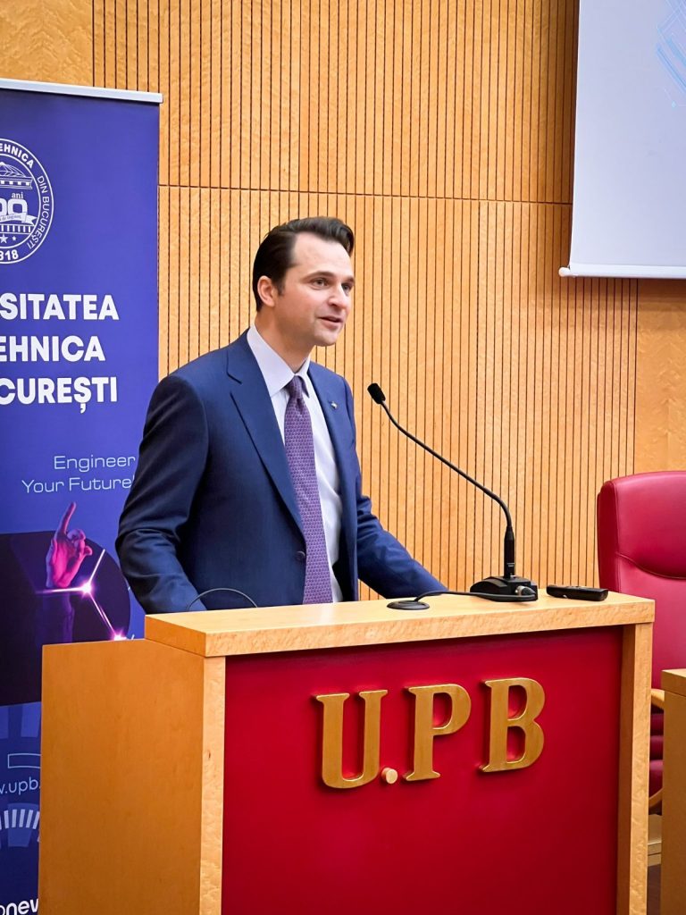 Felicit Universitatea Politehnica București pentru munca de cercetare extraordinară în domeniul Inteligenței Artificiale și vreau să fac precizarea că nu este singurul loc de excelență în acest domeniu din România și să menționez și centrele din Cluj, Timișoara sau Iași”.