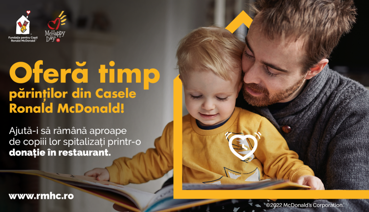 McDonald’s continuă să ajute familiile vulnerabile din România și organizează o nouă ediție a campaniei de strângere de donații McHappy Day, sub mesajul „Oferă timp”. Scopul campaniei este de a sprijini Fundația pentru Copii Ronald McDonald în misiunea sa de a dărui timp familiilor, punând la dispoziția părinților un loc sigur și confortabil, în Casele Ronald McDonald, pentru ca aceștia să poată rămâne aproape de copiii lor spitalizați.
