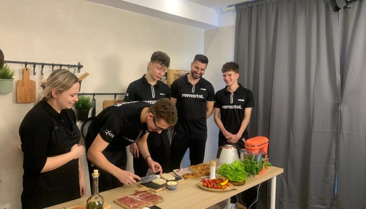 Împreună cu antrenorul lor, Ionuț Seni, băieții au pregătit o focaccia din ingrediente naturale, pe care au transformat-o la final în sandvișuri sănătoase. Totul sub îndrumarea Laurei Eremia, chef specializat în preparate low carb.