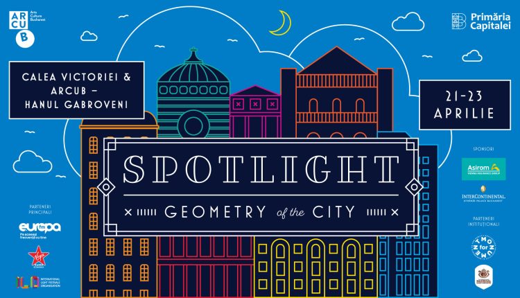 Ediţia Spotlight din acest an se numeşte Geometry of the City şi îşi propune să transforme geometria oraşului prin trei zile de spectacole de lumină, culoare şi sunet. Astfel, între 21 şi 23 aprilie, clădiri celebre din Bucureşti prind viaţă prin videomapping, locuri iconice sunt populate de instalaţii multimedia, iar statuile oraşului sunt animate prin proiecţii de light art.