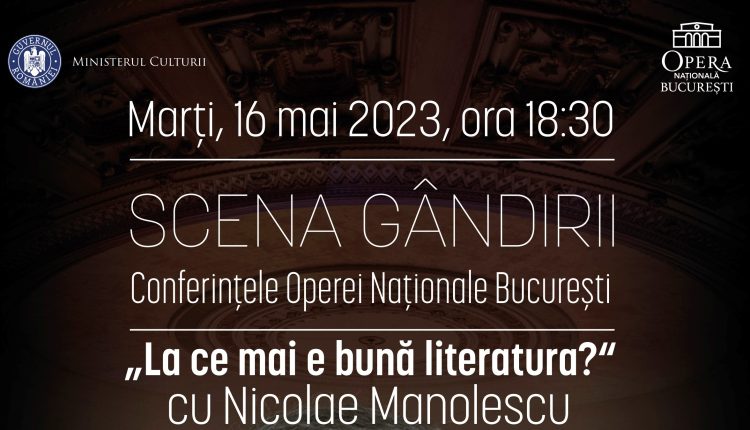 Pe 16 mai, începând cu ora 18:30, invitatul Conferințelor Operei Naționale București – SCENA GÂNDIRII va fi criticul literar Nicolae Manolescu, care va susține prelegerea „La ce mai e bună literatura?”.