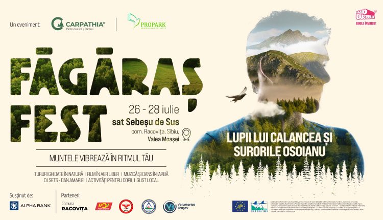 Făgăraș Fest invită iubitorii de natură să se conecteze din nou cu energia Munților Făgăraș și să descopere cultura și frumusețea satelor care împodobesc acești munți, de data aceasta în Sebeșu de Sus, pe Valea Moașei, comuna Racovița din județul Sibiu, în perioada 26 – 28 iulie. Lupii lui Calancea și Surorile Osoianu vor face din cea de-a V-a ediție a festivalului o experiență de vară de neratat. Făgăraș Fest este un festival sustenabil, despre natură și oameni, muzică bună, seri de film în aer liber, drumeții ghidate în natură și activități pentru toate vârstele, în câteva cuvinte despre „a fi împreună”. Accesul la festival este liber.