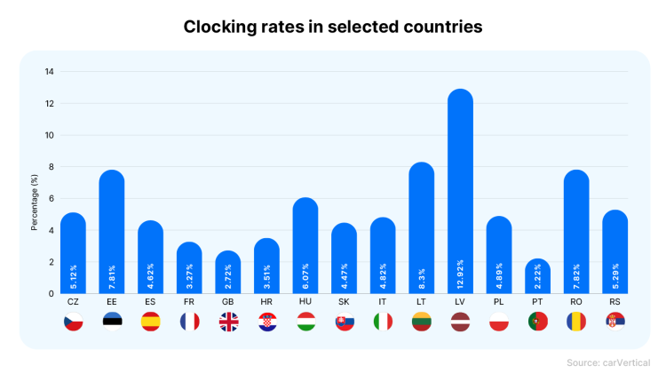 7,8% dintre mașinile din România care au fost verificate pe carVertical au avut kilometrajul dat înapoi, 5,3% în Serbia și 6,1% în Ungaria, ceea ce sugerează că legislația actuală nu descurajează infractorii să recurgă la fraudarea kilometrajelor.