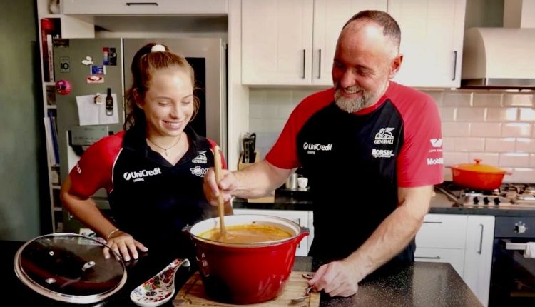 Pilotul i-a arătat fiicei sale cum se prepară gulașul. „Am zis să fie ceva autentic și din zona în care suntem noi, din Miercurea Ciuc. Am zis să nu mergem în zona italiană, să îl lăsăm pe Marco și pe Simone în zona aceea. Nouă ne place să fie și puțin picant” – Adrian Teslovan, pilot în Campionatul Național de Raliuri.