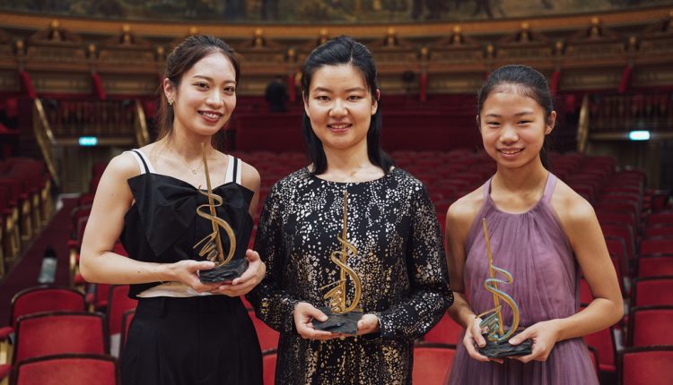 Trofeele Concursului Enescu 2024, oferite celor trei tinere violoniste, sunt realizate de către artistul Mihai Băncilă.