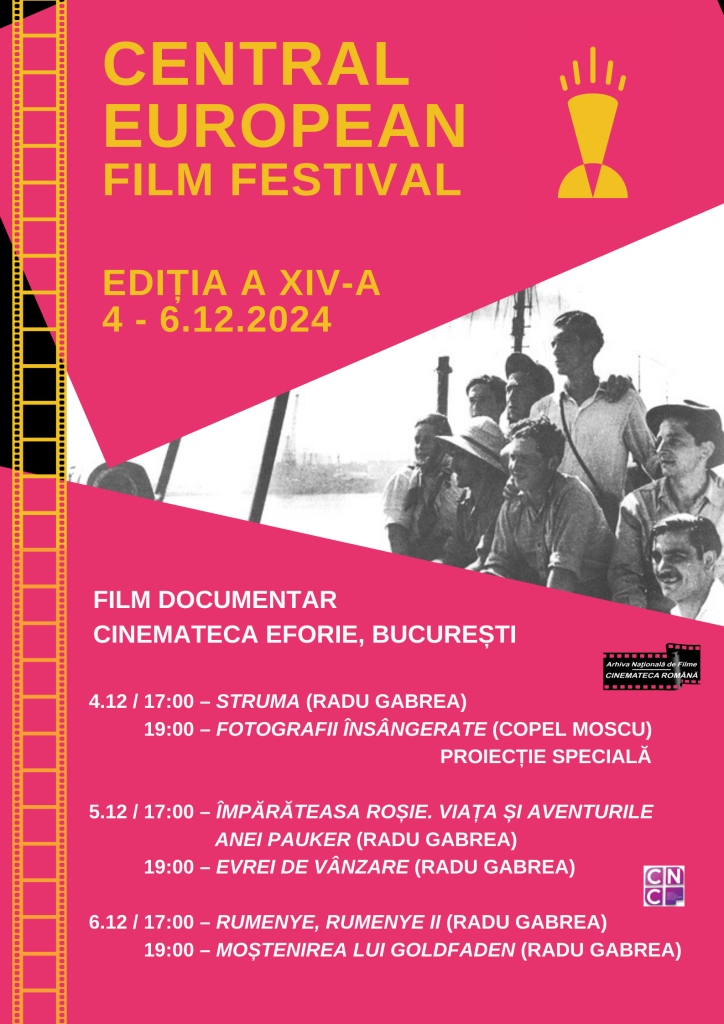 Central European Film Festival (CEFF), eveniment inițiat în anul 2011 de regizorul Radu Gabrea și organizat în prezent în memoria lui, se va desfășura anul acesta în perioada 4-6 decembrie, la Cinemateca Eforie din București. Ediția a XIV-a este dedicată filmului documentar și va cuprinde câteva dintre cele mai importante documentare realizate de Radu Gabrea de-a lungul carierei sale, precum și proiecția specială a celui mai recent film documentar semnat de regizorul Copel Moscu.