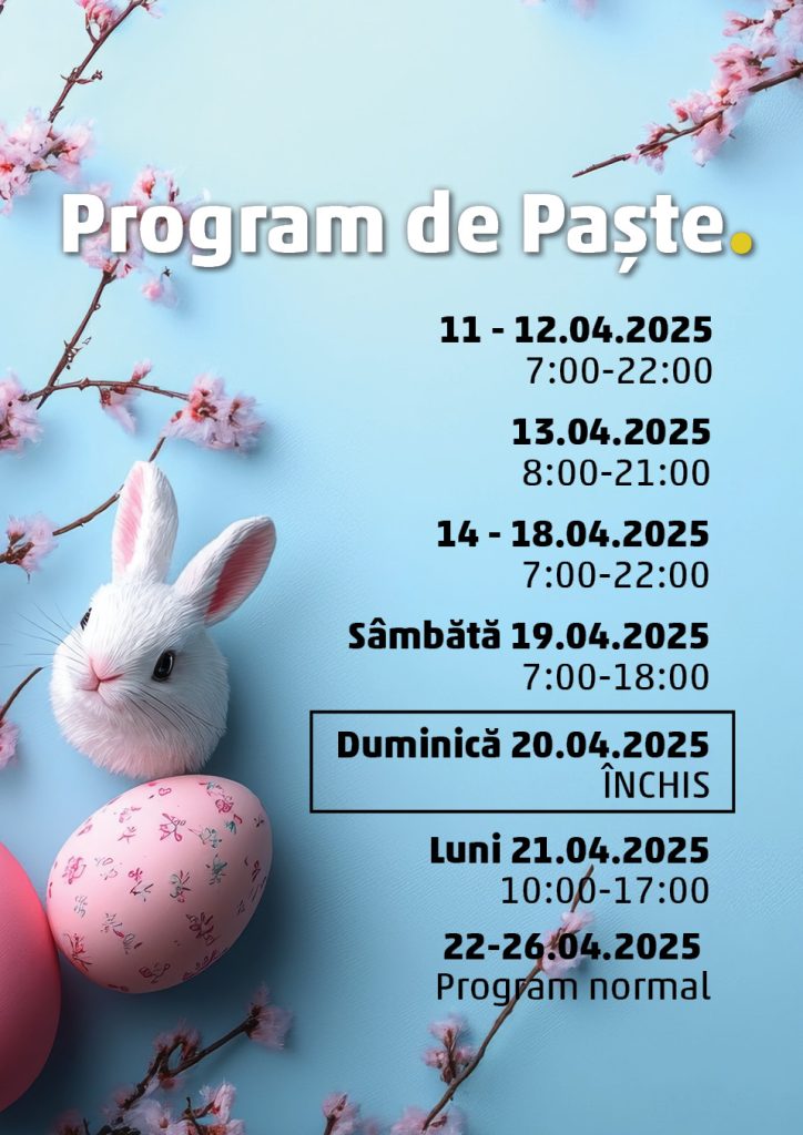 - 14 – 18 aprilie 2025, magazinele vor fi deschise în intervalul 07:00 – 22:00