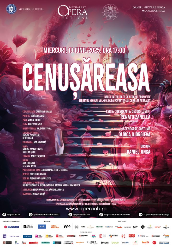 - Miercuri, 18 iunie, ora 17:00 – Cenuşăreasa de Prokofiev, balet în regia şi coregrafia lui Renato Zanella, dirijor Daniel Jinga (Opera Naţională Bucureşti)