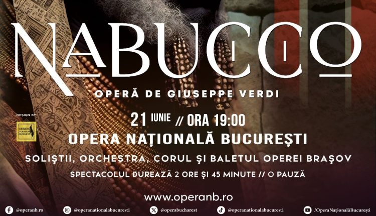 - Sâmbătă, 21 iunie, ora 19:00 – Nabucco de Verdi, opera în regia Andei Tăbăcaru, dirijor David Crescenzi (Opera din Braşov)