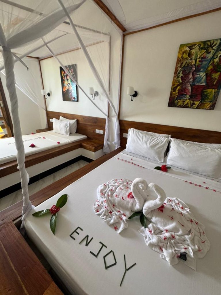 Localitatea Paje, aflată pe coasta de est a insulei, este renumită pentru viața sa de noapte efervescentă, plajele cu nisip alb și kitesurfingul spectaculos, într-o atmosferă în care cultura africană se împletește armonios cu spiritul internațional. Jambo Resort completează perfect acest cadru vibrant, devenind o extensie naturală a stilului de viață zanzibarez: colorat, cald și relaxat.