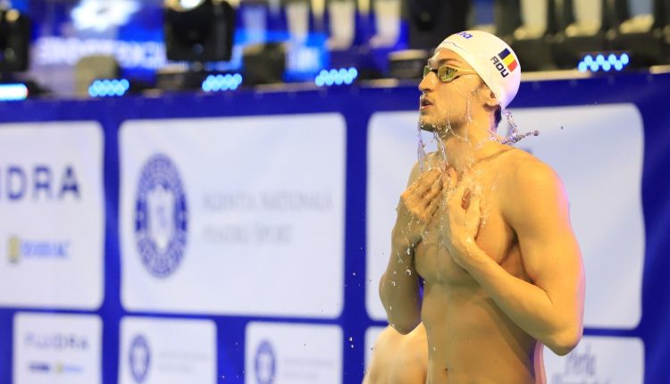 Denis Popescu, cel mai înalt înotător din delegația “tricoloră”, la 1.98 m, a cucerit aurul în proba de 100 m fluture după ce a încercat să copieze cât mai multe de la bunul său prieten David Popovici.