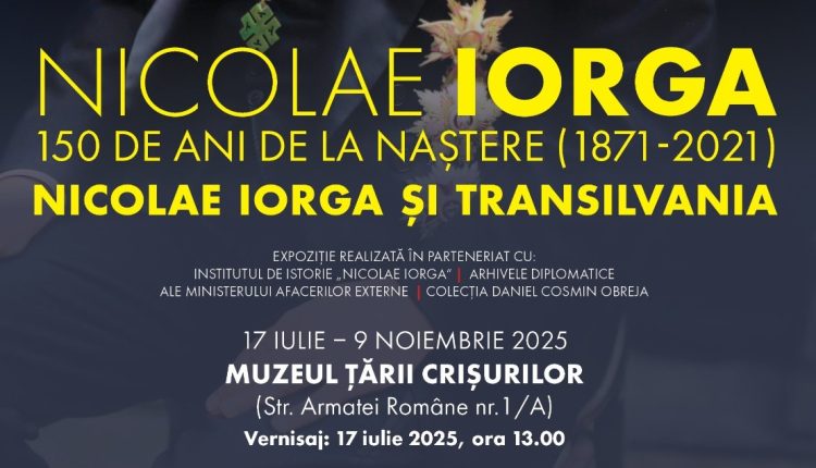 Muzeul Național de Istorie a României în colaborare cu Muzeul Țării Crișurilor Oradea – Complex Muzeal, cu sprijinul Consiliului Județean Bihor și al Primăriei Municipiului Oradea și în parteneriat cu Institutul de Istorie „Nicolae Iorga”, Arhivele Diplomatice ale Ministerului Afacerilor Externe și Colecția Daniel Cosmin Obreja”, anunță deschiderea expoziției „Nicolae Iorga – 150 de ani de la naștere (1871-2021). Nicolae Iorga și Transilvania.
