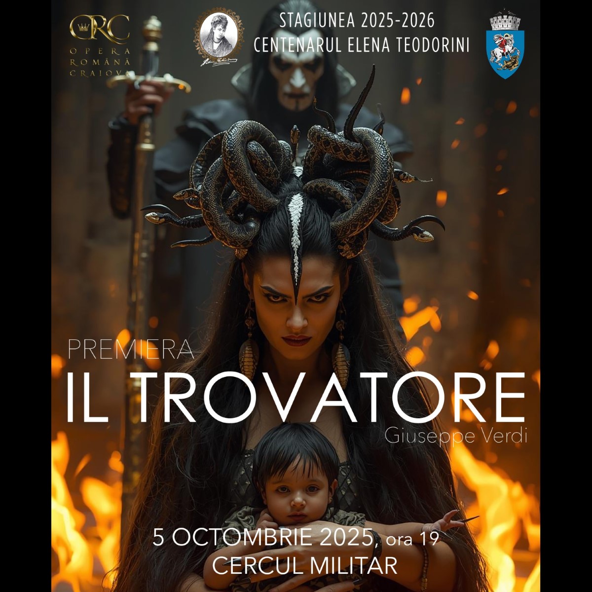 Premiera operei „Trubadurul” („Il Trovatore”) deschide stagiunea 2025-2026 a Operei Române Craiova, duminică, 5 octombrie, pe scena Cercului Militar. Fiecare spectacol al noii stagiuni dedicate Centenarului Elena Teodorini este un tribut adus marii artiste, patroana spirituală a Operei craiovene, în anul 2026 lumea muzicală comemorând un veac de la trecerea în eternitate a legendarei soprane.